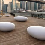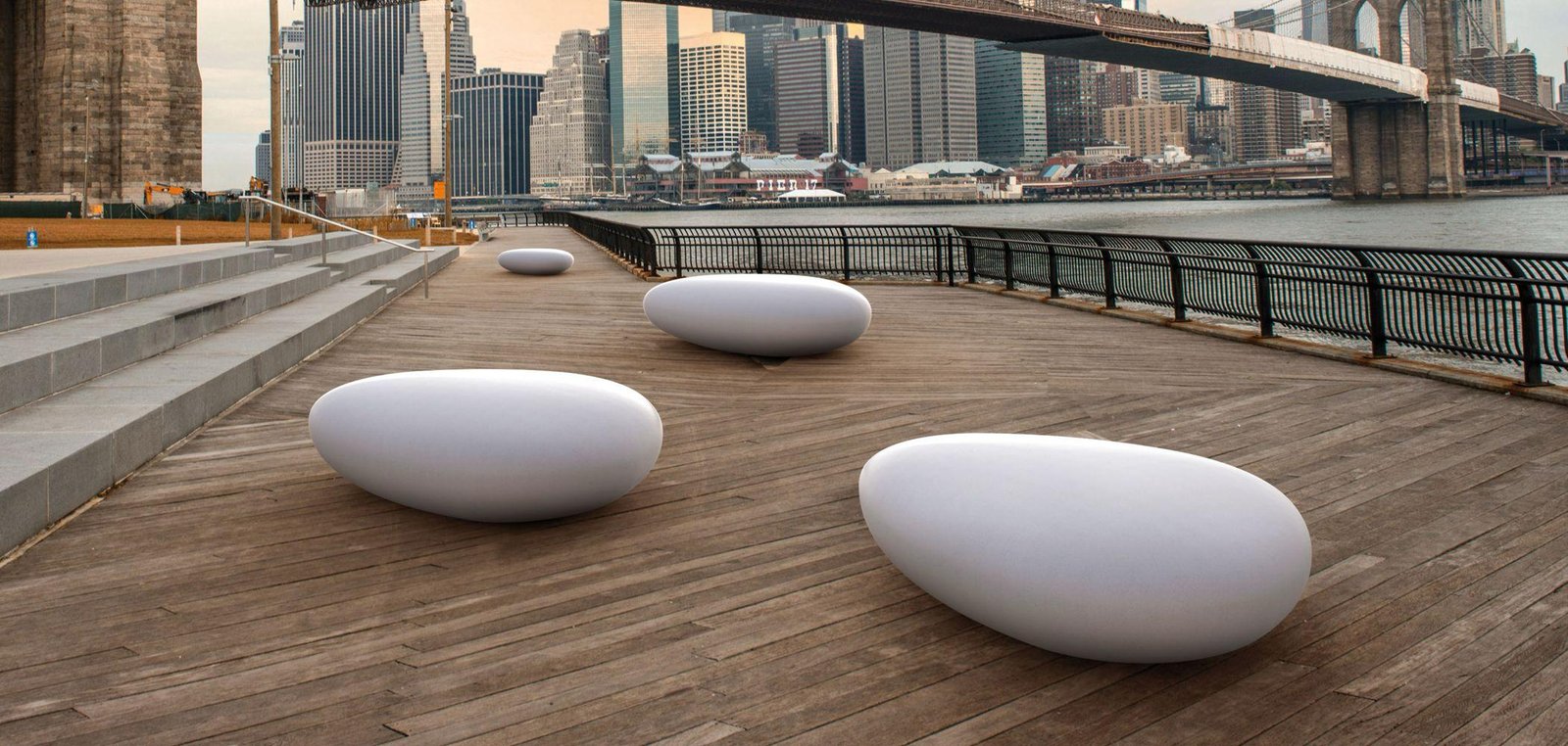 O banco Stone é inspirado em uma pedra monolítica, oferecendo um design sólido e contemporâneo. Disponível em concreto de alta performance ou resina de alta resistência, é ideal para ambientes públicos sofisticados.