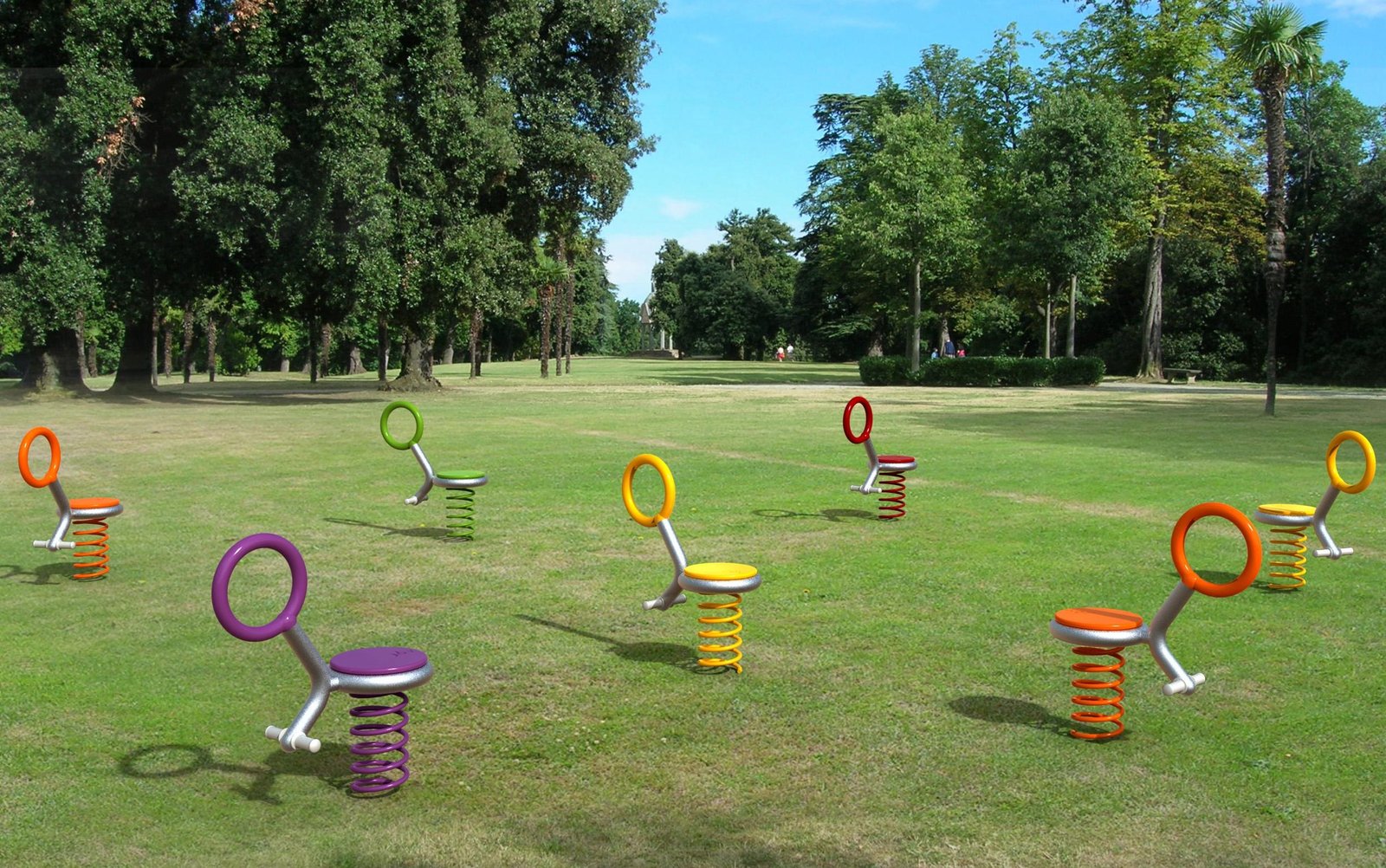 Brinquedo com mola de design lúdico e inovador, ideal para parques infantis. Cores vibrantes e formas seguras que estimulam o equilíbrio e a diversão das crianças.