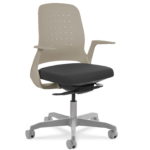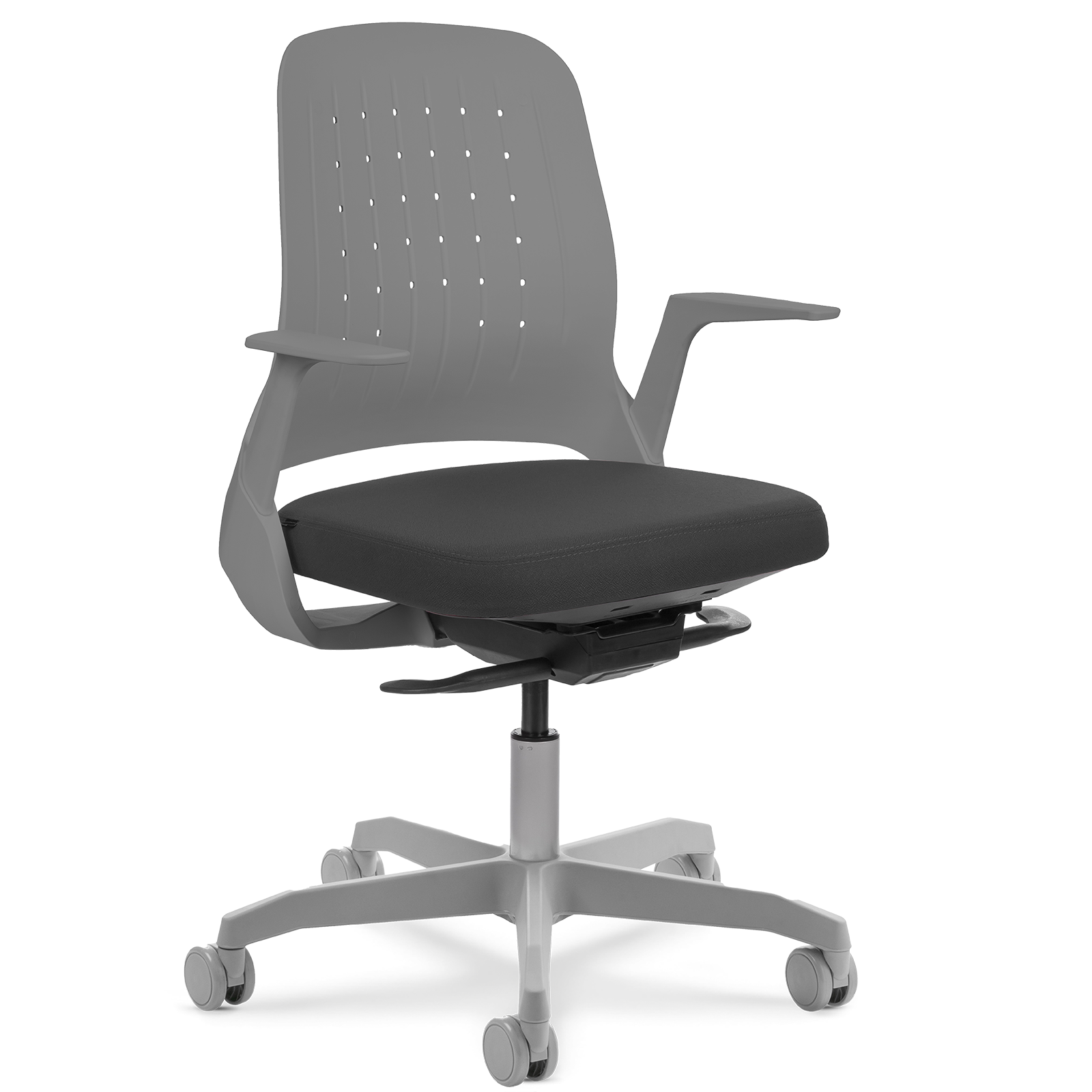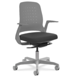 - Apoio de braços: Apoia-braços fixo injetado em resina termoplástica de alta resistência, conforto e ergonomia.
