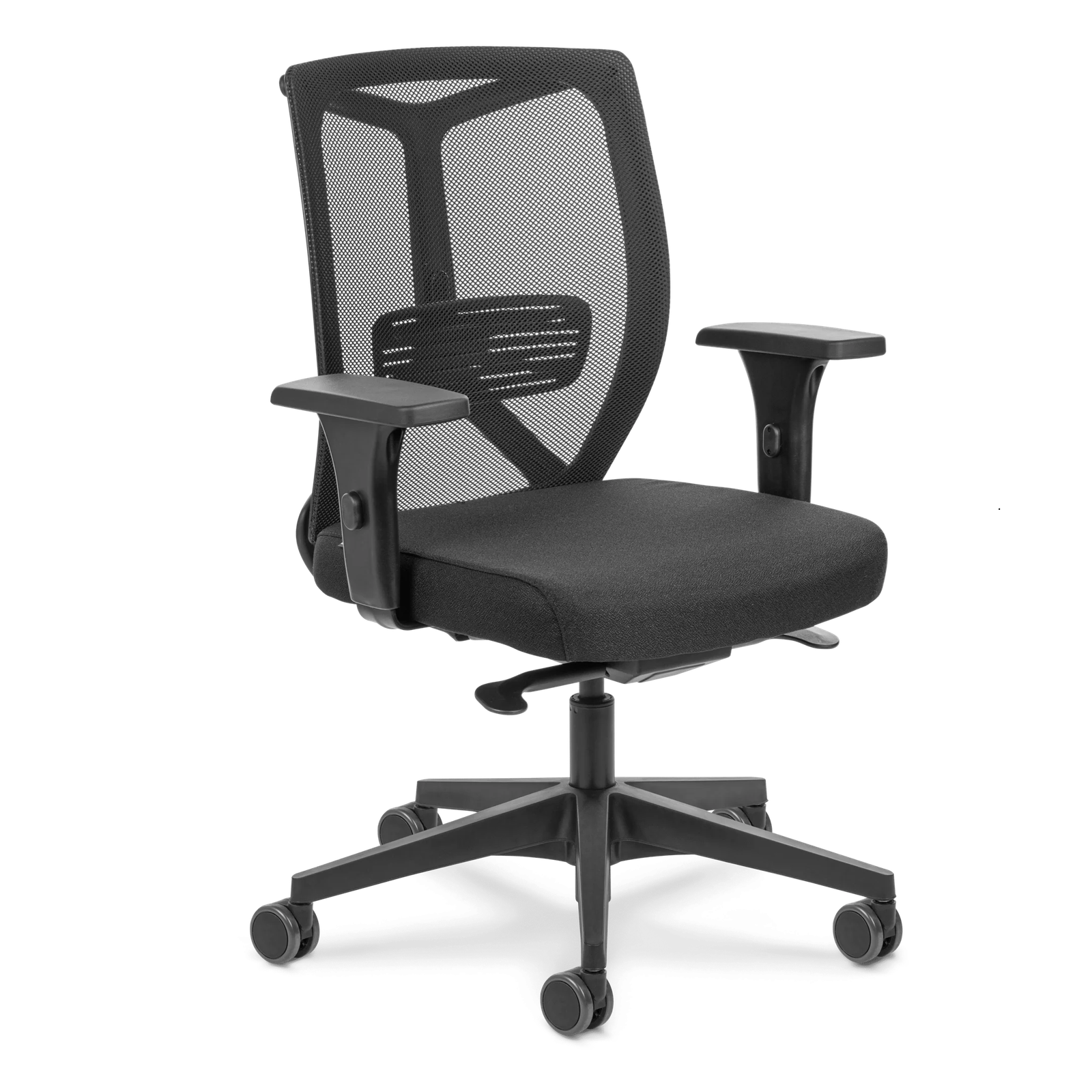 - Encosto: Encosto em tela flexível de alta resistência. Apoio lombar independente, regulável na altura.