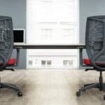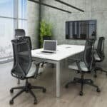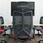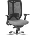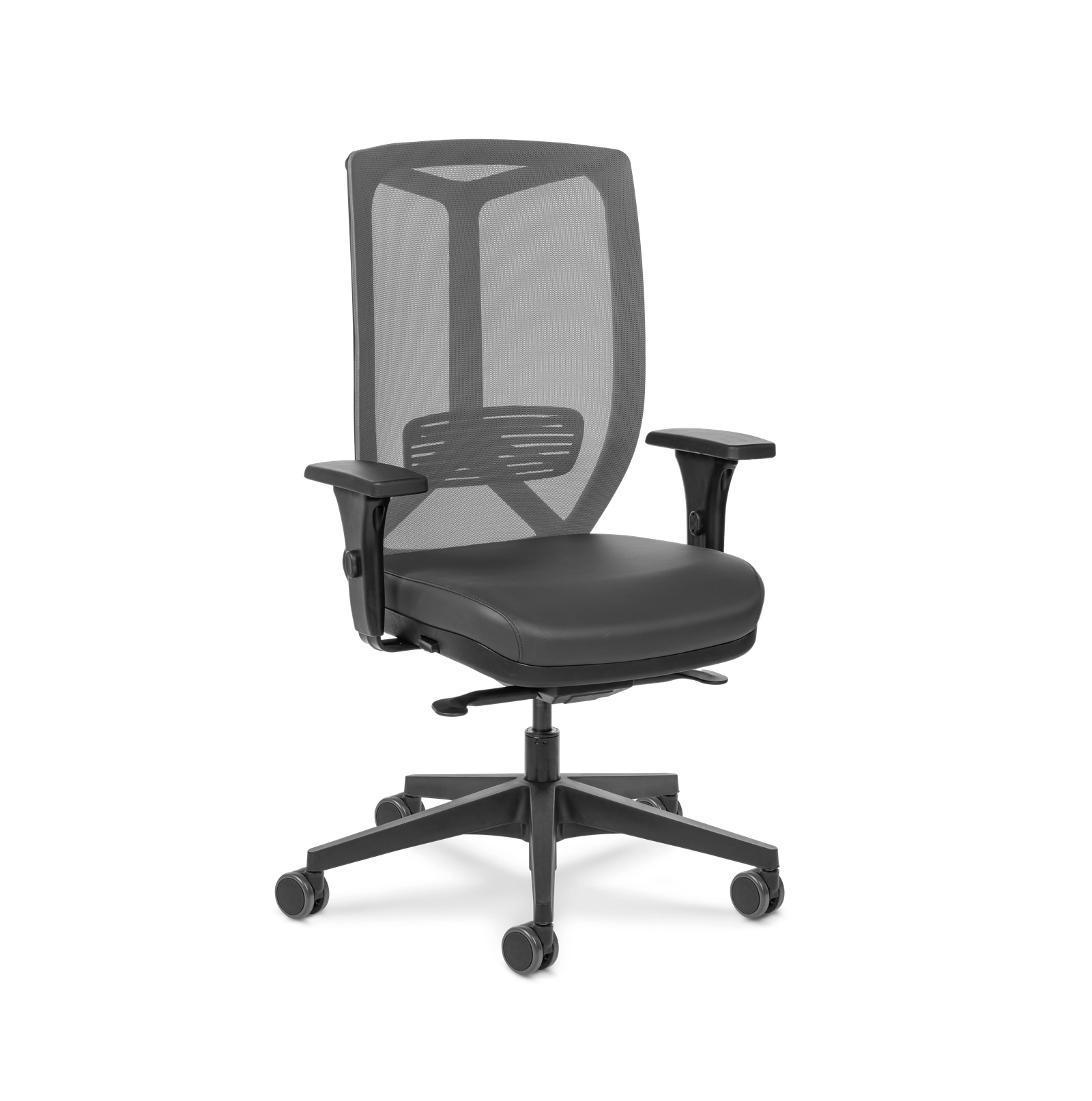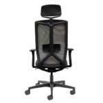 - Encosto: Encosto em tela flexível de alta resistência. Apoio lombar independente, regulável na altura.