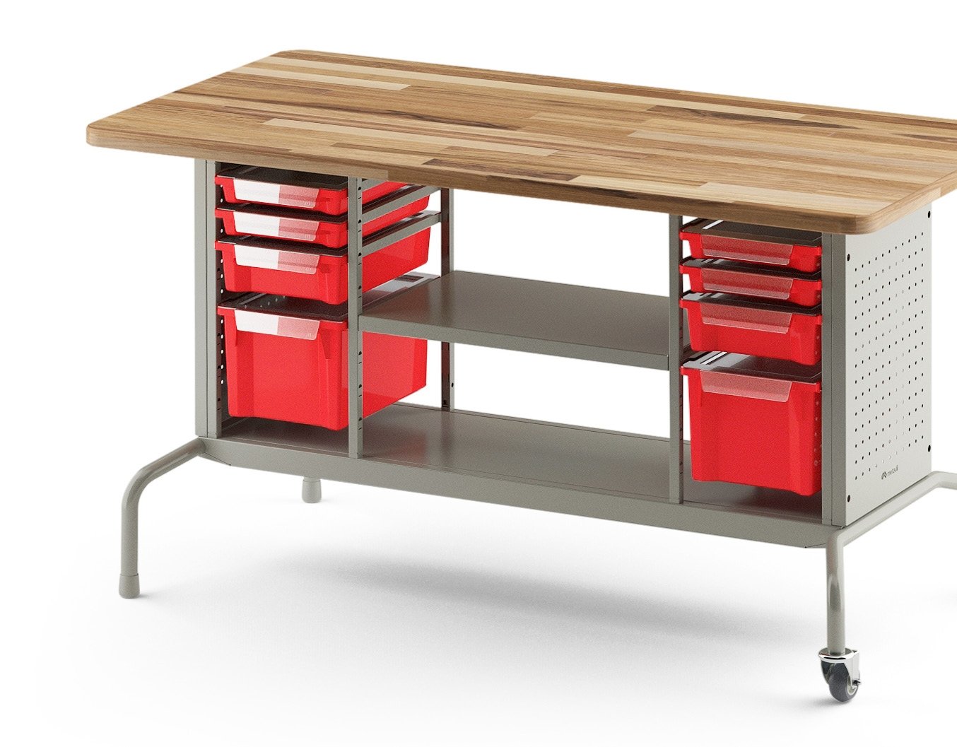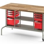 Trabalho em dupla ou em grupo: A bancada Setbox Metadil permite aos alunos, a disposição de uma coluna de ferramentas e uma coluna de caixas Setbox para cada dupla. Também oferece a possibilidade de trabalho em grupos de 4 pessoas
