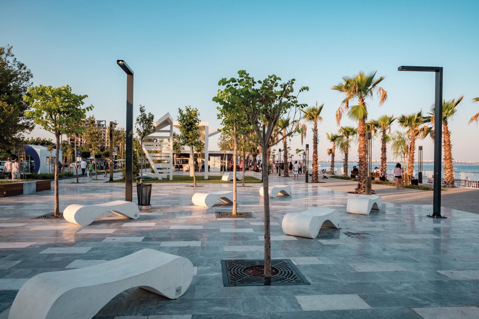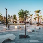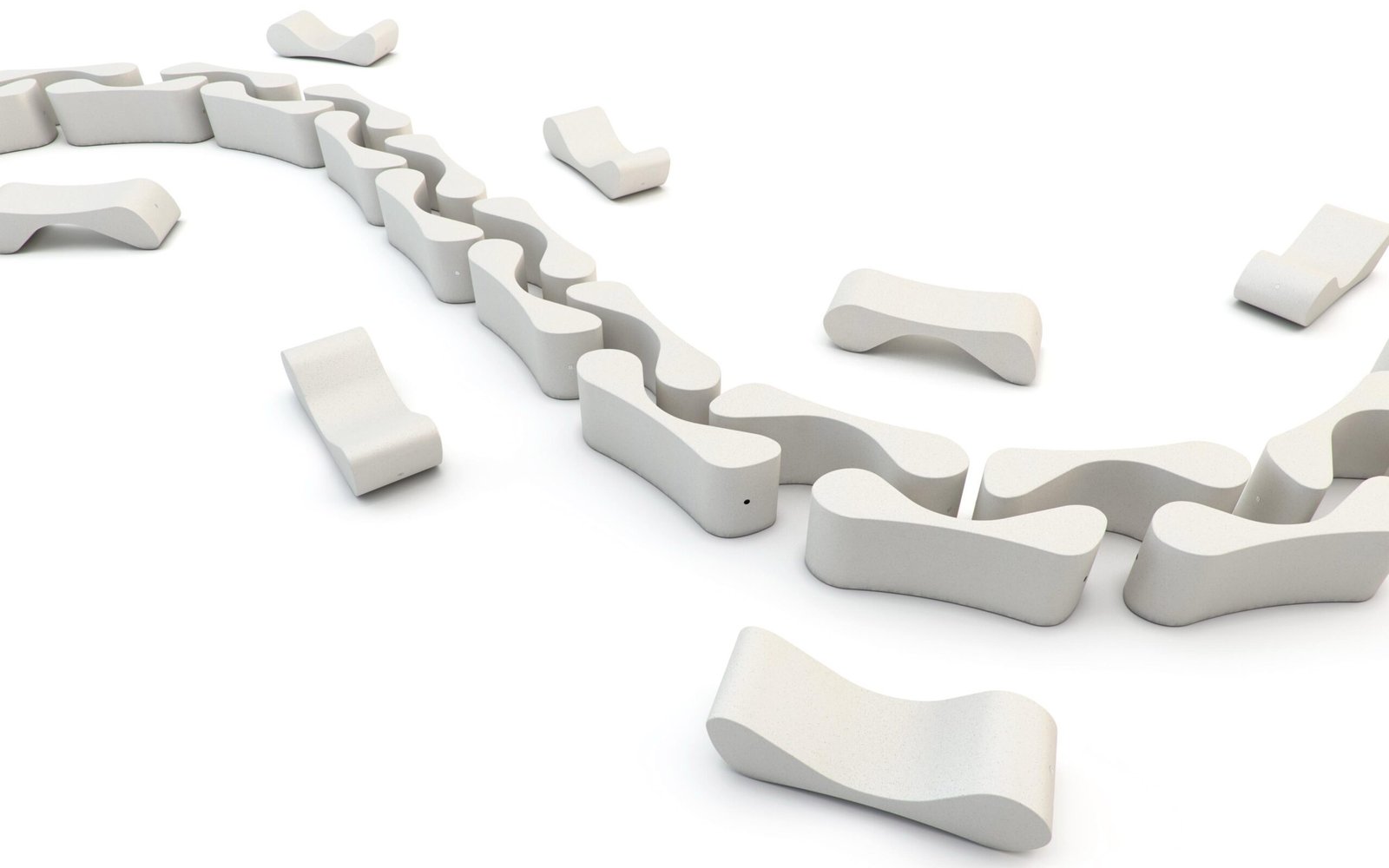 O banco Rivola é uma peça escultural em pedra reconstituída, que combina design orgânico com funcionalidade urbana. Seu formato versátil permite diferentes posições de uso, inclusive como chaise longue.